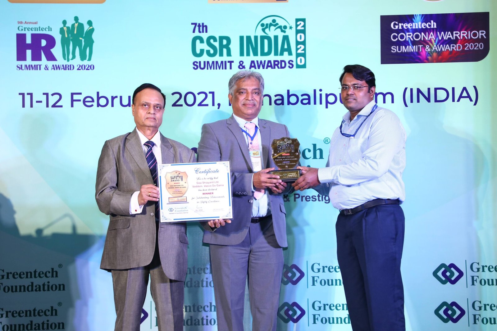 Golden Peacock Award conferred to Goa Shipyard Limited for Corporate Social Responsibility for the year 2019 on 4th March, 2020.